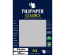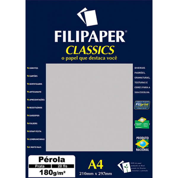 É um papel multiuso no formato A4, na gramatura 180g/m2 (20 folhas) com cores vibrantes,