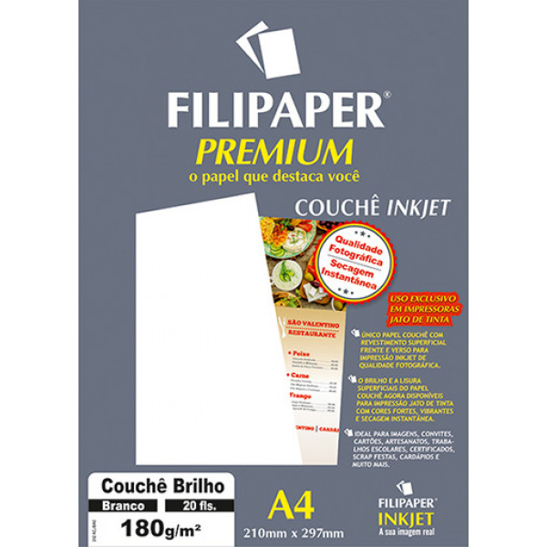 único papel couchê com revestimento superficial frente e verso para impressão inkjet de qualidade fotográfica.