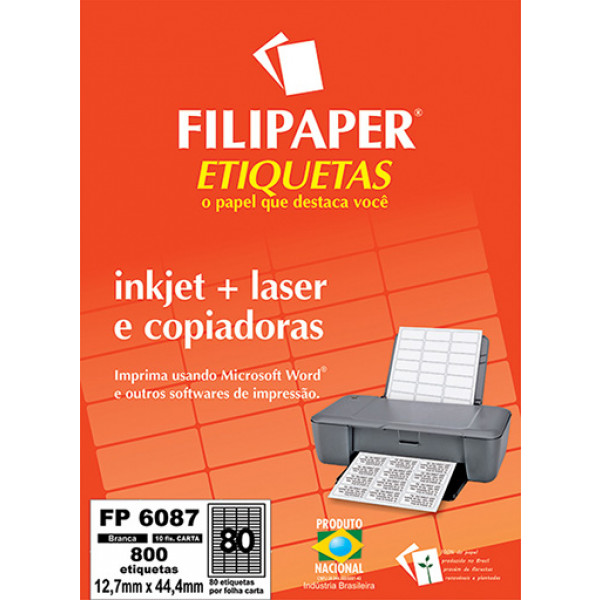 Etiquetas 6087 Autoadesivas brancas para impressoras inkjet e laser.