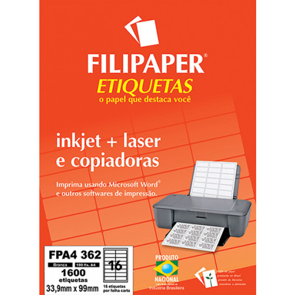 Etiquetas A4362 Autoadesivas brancas para impressoras inkjet e laser.
